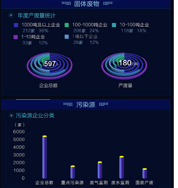 后端通过低代码平台快速搭建危废转移联单、处置工艺优化、合规审计等应用模块,打通运输企业、处置单位、监管部门的数据壁垒,实现从产生、运输到处置的全链条可追溯闭环管理,有效提升监管效能,同时打造可视化一张图,全面感知企业生态环境监测数据,汇总辖区的产废信息、运送信息、处置数据、执法管理、碳排放等信息,利用数据可视化技术,实现智慧大屏可视化的实时展示,为管理者的决策提供科学化依据,推动危废管理向智能化、协同化、精准化升级,助力企业抢占行业发展先机。