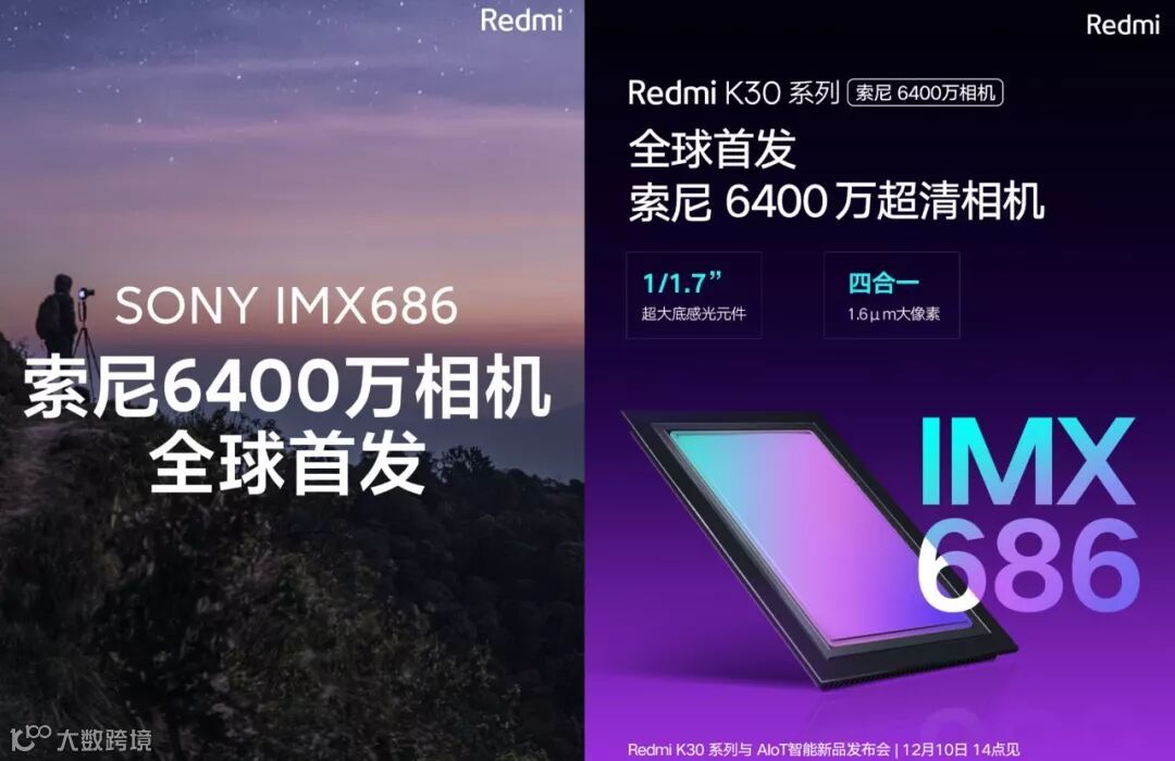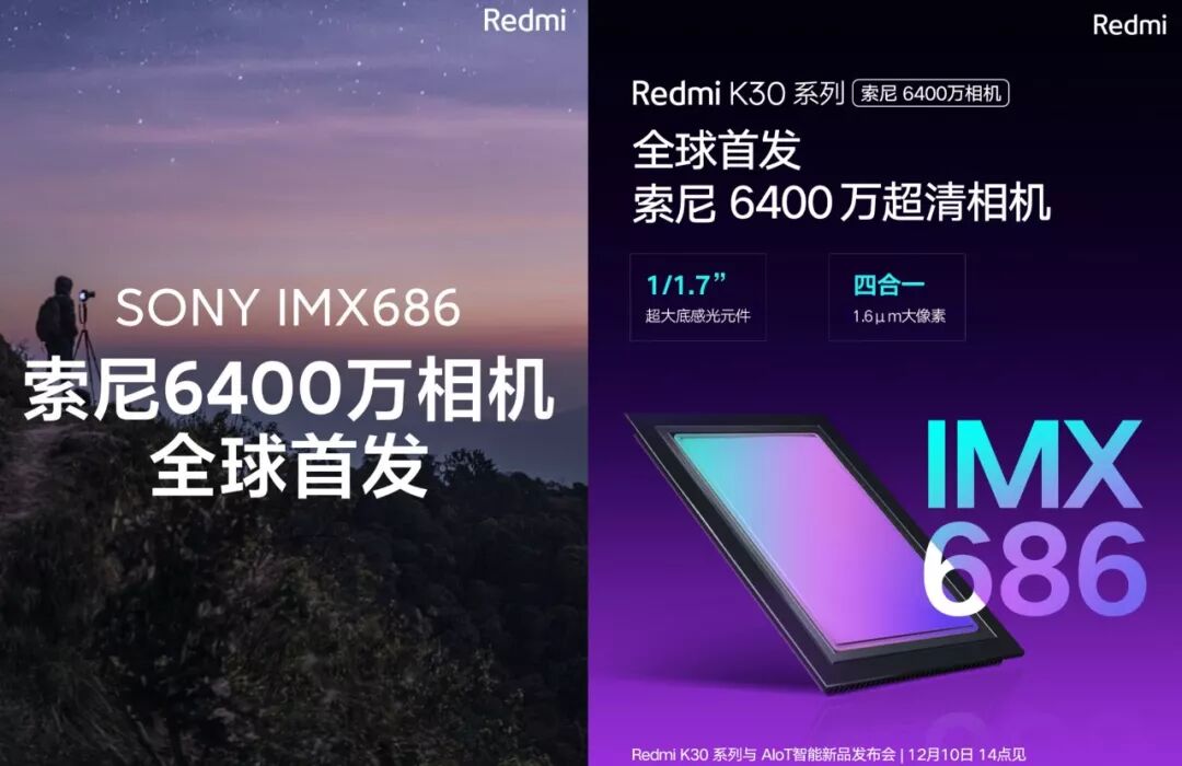 Redmi K30系列这颗6400万像素正是今天刚官宣的索尼IMX686首发,据了解,IMX686采用1/1.73英寸超大底感光元件,四合一1.6μm大像素,光圈 F/1.89。作为对比,华为Mate 30 Pro身上的索尼IMX600分别是1/1.7英寸CMOSF/1.6光圈,OIS;1/1.54英寸CMOS,F/1.8光圈;