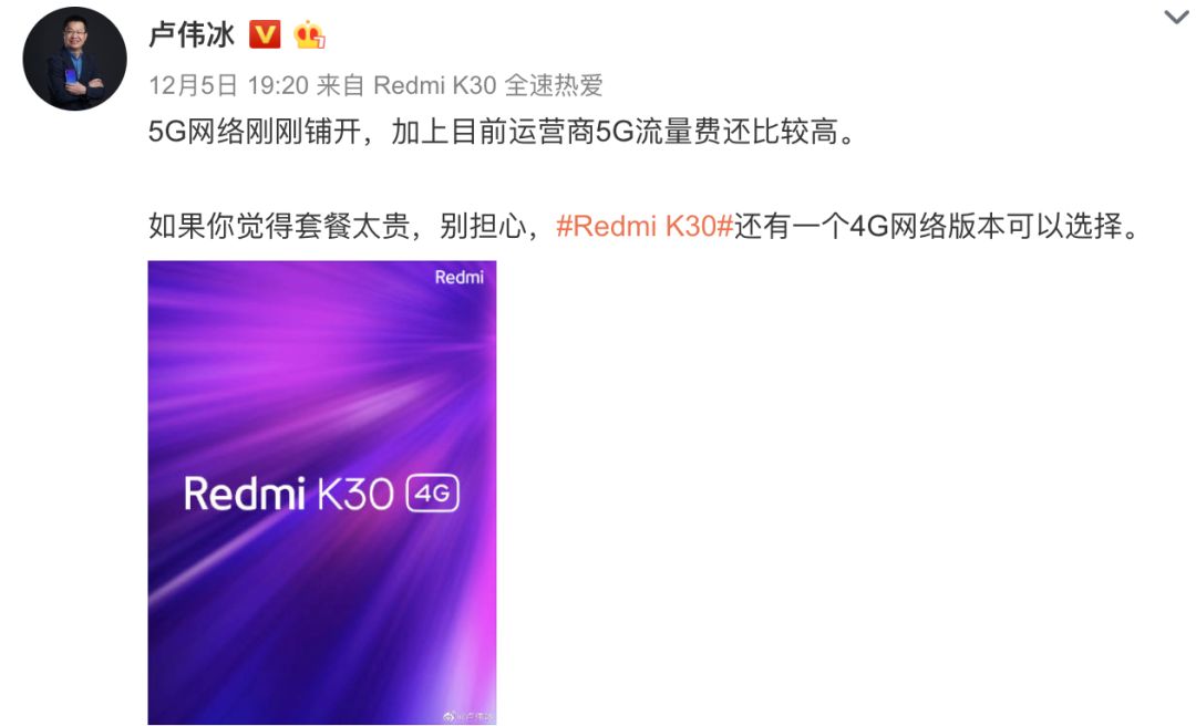 据了解,12月10日举行的Redmi K30系列与AIoT智能新品发布会上,带来的手机产品只有Redmi K30 4G版和Redmi K30 5G版2款,并没有K30 Pro。其中K30 4G版将搭载骁龙730G,K30 5G版首发骁龙765G,K30 Pro或明年初搭载高通骁龙865和小米10发布时间临近。