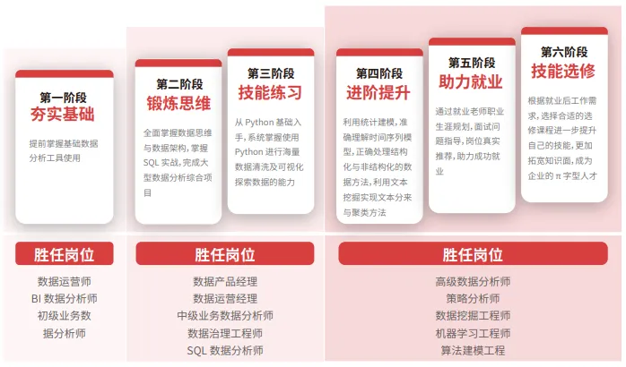 除了优质师资团队外,我们还提供班主任和助教答疑服务、职业规划团队的指导,为您顺利进入企业就业铺平道路。无论您是零基础学生、转行人士,还是已从事数据相关工作多年的专业人士,我们都欢迎您的加入。立即踏上数据分析之旅,掌握数据在各行业的应用,提升数字化工作效率,实现个人职业发展的新突破。快来报名吧,迎接挑战,赢得未来的辉煌!