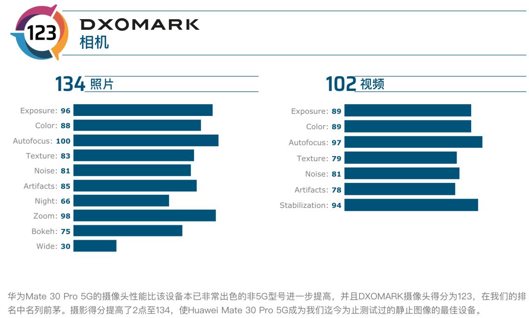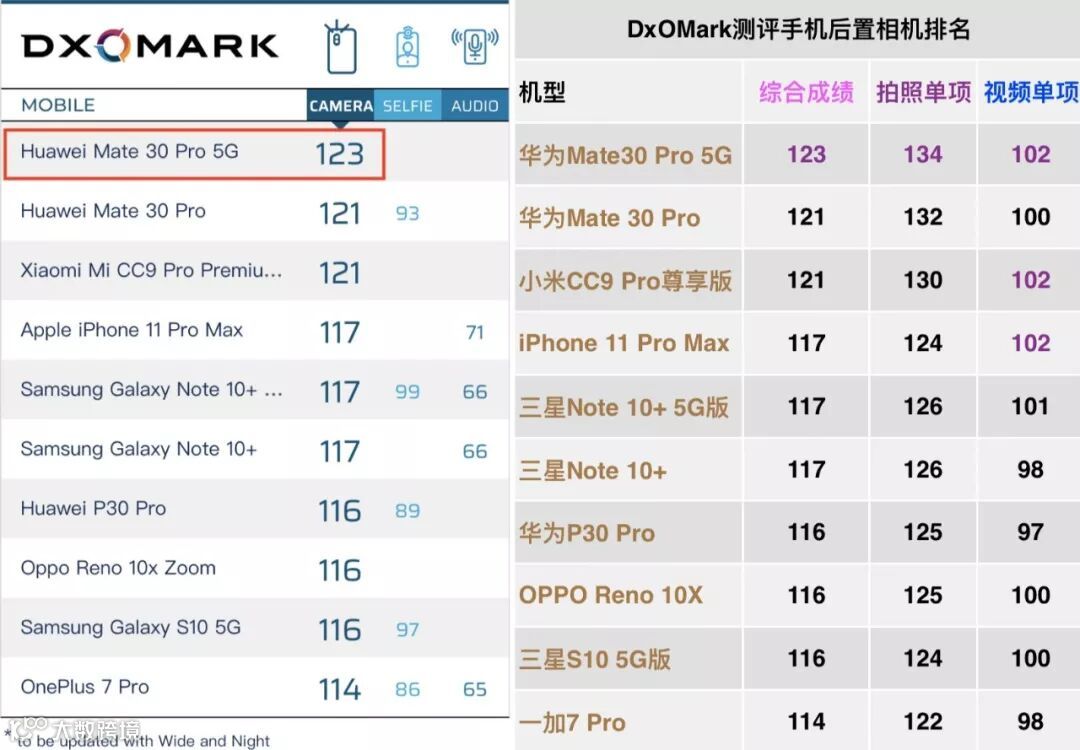 今天,DxOMark更新了华为Mate30 Pro 5G版的测试结果,后置相机综合成绩123分,拍照单项134分,视频单项102分,各项均位列DxOMark第一。但看到这份榜单也有不少小伙伴心生疑惑,5G版和4G版不是一样的参数吗,为啥5G版分数和排名更高?🤔