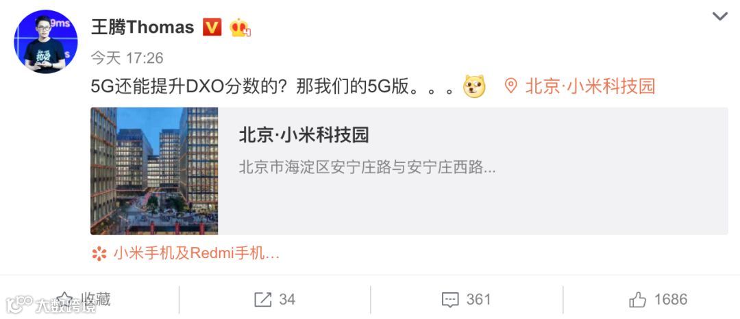 小米手机产品总监也发文感慨:「5G还能提升DXO分数的?那我们的5G版。。。