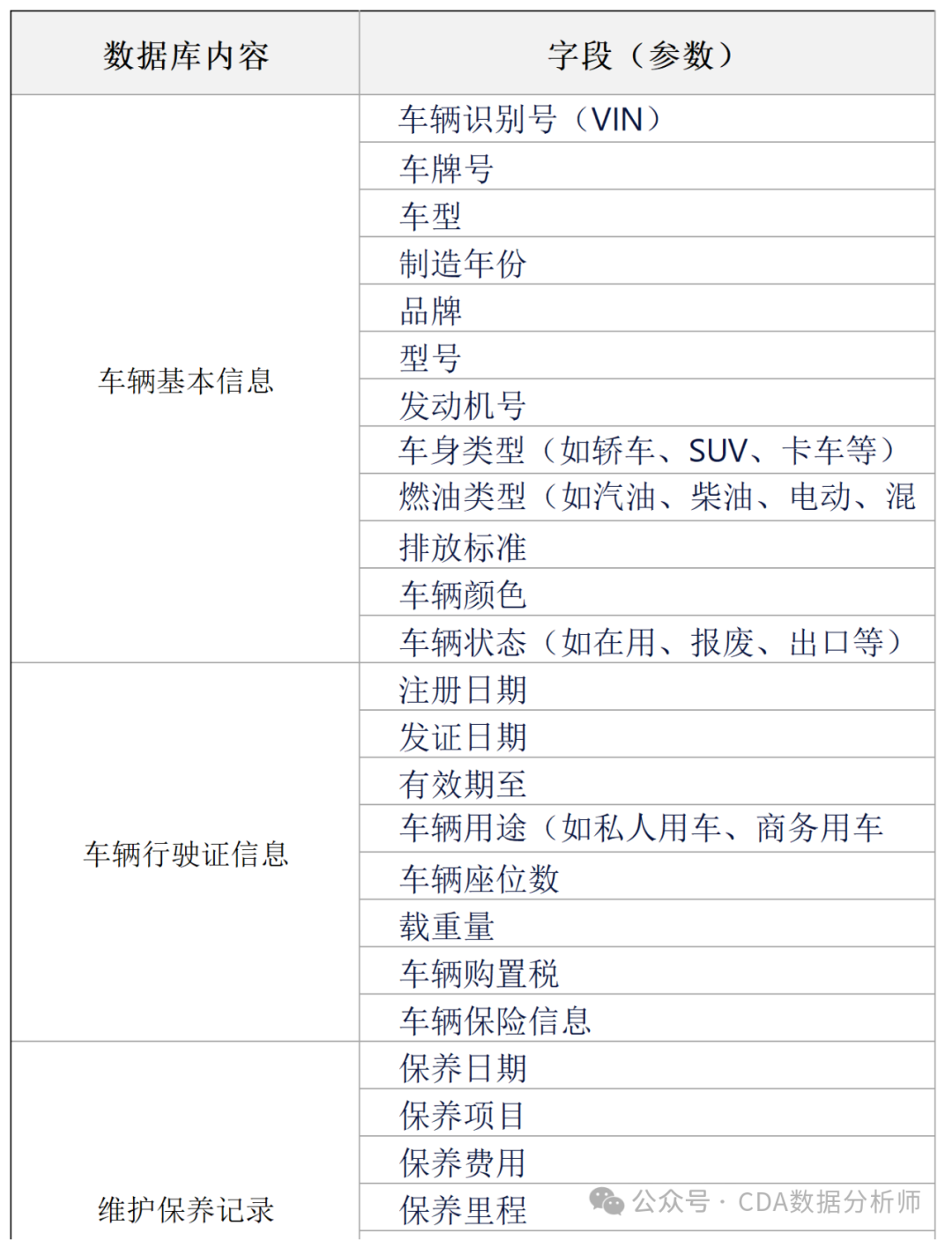 如上表所示,一份完整的数据大致分为以下内容:各类车辆的详细信息和历史记录。通过连接每个部分的数据,可以得到很多不同的分析结果和应用方式。