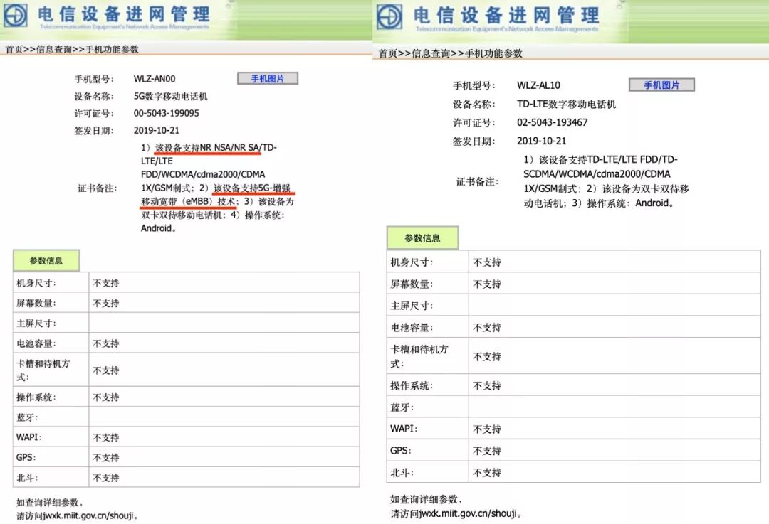 核心配置上,据了解华为Nova 6将分4G和5G双版本,目前已经现身工信部,型号分别为WLZ-AL10和WLZ-AN00 ,其中华为Nova 6 5G版,支持NSA和SA两种5G组网方式,并支持5G-增强移动宽带(eMBB)技术。预计搭载麒麟990 5G。