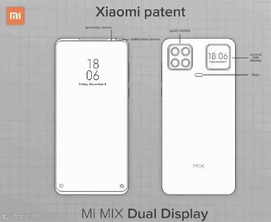 小米的新外观专利 正面采用了类似魅族16s Pro的进化版设计,真全面屏,上下边框极窄,极窄的额头还放置了听筒和2颗传感器,里面应该有1颗前置摄像头,背部就有意思了,2块浴霸,闪光灯放在下面,左边的浴霸内置后置四摄,右侧的浴霸则是副屏设计,用于显示通知、时间等。