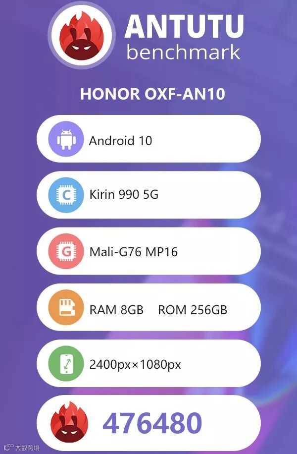 跑分方面,8+256GB版的荣耀V30 Pro安兔兔跑分综合成绩476480,对比同样搭载麒麟990 5G的Mate 30 Pro 5G,荣耀V30 Pro GPU单项高出1万多分,毕竟荣耀一向更激进一些,也能理解。