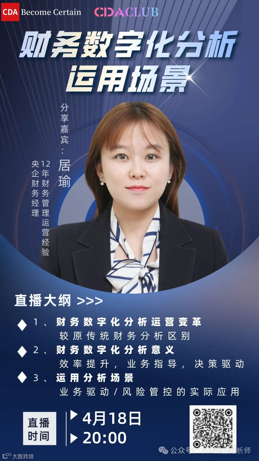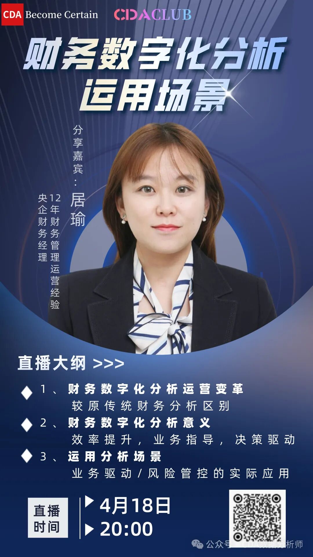 PS.又到周四了,今晚20:00继续大咖分享,12年财务管理经验的居喻老师分享《财务数字化分析运用场景》,赶紧戳链接预约直播!
