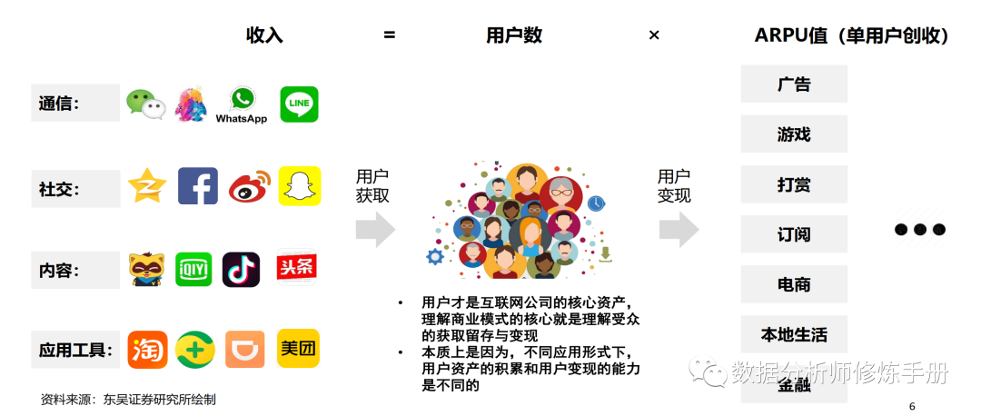 但是另外一些时候用户数量是不具备太多变现能力的,这时就需要通过拓展一些其他业务来获得足够的收入。比如前面提到知乎靠优质问答获取用户,却依赖网文进行变现。美团依赖外卖支撑自己的月活,实际利润的主要来源是本地生活。
