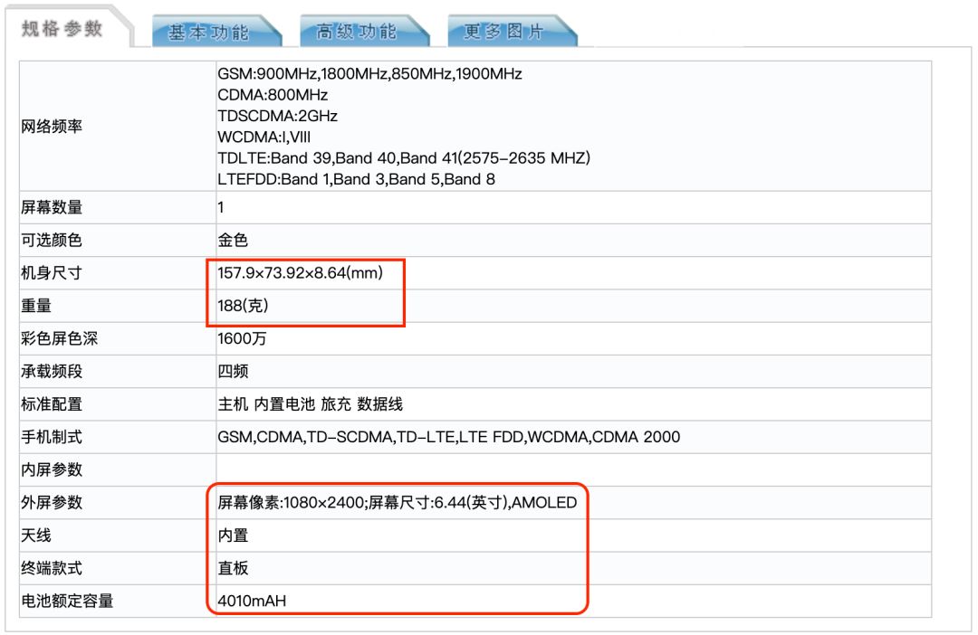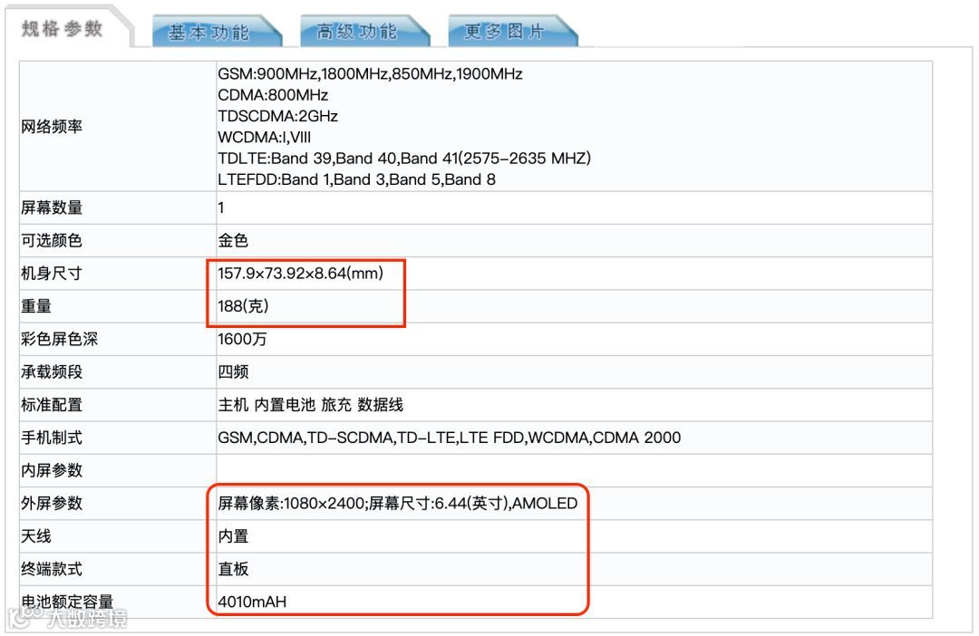 参数上,工信部显示,vivo S5将采用6.44英寸2400*1080分辨率的AMOLED屏,屏幕指纹,网曝vivo S5将会是vivo首款OLED挖孔屏,机身三围157.9*73.92*8.64mm,重188g。