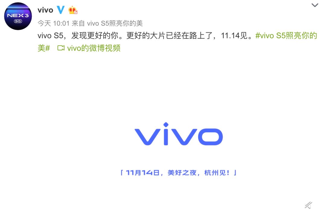 今年三月,vivo启动了全新系列 S 系列,表示主打年轻用户群体,整体来说 S系列 可以算是 vivo X系列的低配版,其于3月27日发布了第一款vivo S1,转眼间vivo S5也要来了,日前官方正式宣布vivo S5将于11月14日在杭州举行新品发布会,现在vivo S5相关配置已经被工信部曝光。