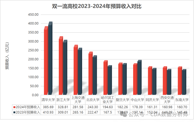 1、2024年全国高校预算收入排行榜前10,清华大学稳居第一