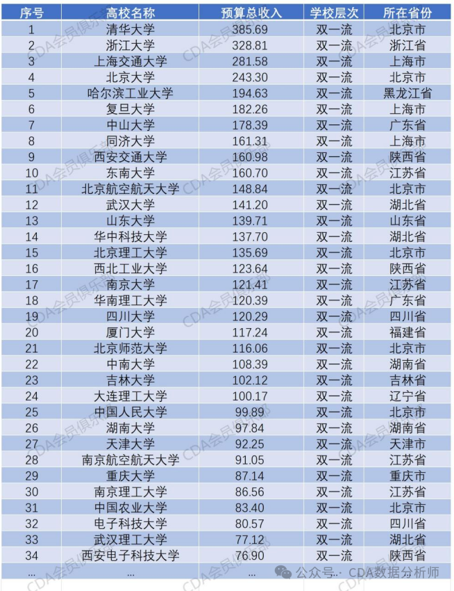 办学经费,对于高校发展来说,是核心和基石。学校人才培养、科学研究等各项事业的开展,都依赖于教育经费的支持。通过网络搜集数据,CDA会员俱乐部统计了2024年700余所高校的预算数据,结合2023年的预算情况进行数据解读分析。