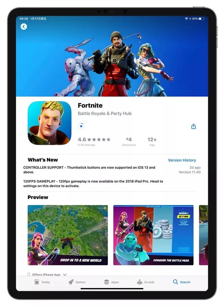 据IT之家报道,近日更新的《堡垒之夜》v11.40正式加入了对iPad Pro ProMotion自适应刷新率屏幕的支持,也就是说如果你拥有2018款iPad Pro就可以万现在你能够在iPad Pro上玩到支持120Hz刷新率的《堡垒之夜》了。