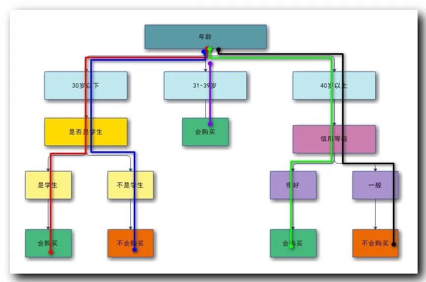 from sklearn.tree import _treedef XiaoWuGe_Get_Rules(clf,X):n_nodes = clf.tree_.node_countchildren_left = clf.tree_.children_leftchildren_right = clf.tree_.children_rightfeature = clf.tree_.featurethreshold = clf.tree_.thresholdvalue = clf.tree_.valuenode_depth = np.zeros(shape=n_nodes, dtype=np.int64)is_leaves = np.zeros(shape=n_nodes, dtype=bool)stack = [(0, 0)]while len(stack) > 0:node_id, depth = stack.pop()node_depth[node_id] = depthis_split_node = children_left[node_id] != children_right[node_id]if is_split_node:stack.append((children_left[node_id], depth+1))stack.append((children_right[node_id], depth+1))else:is_leaves[node_id] = Truefeature_name = [X.columns[i] if i != _tree.TREE_UNDEFINED else "undefined!"for i in clf.tree_.feature]ways = []depth = []feat = []nodes = []rules = []for i in range(n_nodes):if is_leaves[i]:while depth[-1] >= node_depth[i]:depth.pop()ways.pop()feat.pop()nodes.pop()if children_left[i-1]==i:#当前节点是上一个节点的左节点,则是小于a='{f}<={th}'.format(f=feat[-1],th=round(threshold[nodes[-1]],4))ways[-1]=alast =' & '.join(ways)+':'+str(value[i][0][0])+':'+str(value[i][0][1])rules.append(last)else:a='{f}>{th}'.format(f=feat[-1],th=round(threshold[nodes[-1]],4))ways[-1]=alast = ' & '.join(ways)+':'+str(value[i][0][0])+':'+str(value[i][0][1])rules.append(last)else: #不是叶子节点 入栈if i==0:ways.append(round(threshold[i],4))depth.append(node_depth[i])feat.append(feature_name[i])nodes.append(i)else:while depth[-1] >= node_depth[i]:depth.pop()ways.pop()feat.pop()nodes.pop()if i==children_left[nodes[-1]]:w='{f}<={th}'.format(f=feat[-1],th=round(threshold[nodes[-1]],4))else:w='{f}>{th}'.format(f=feat[-1],th=round(threshold[nodes[-1]],4))ways[-1] = wways.append(round(threshold[i],4))depth.append(node_depth[i])feat.append(feature_name[i])nodes.append(i)return rules
