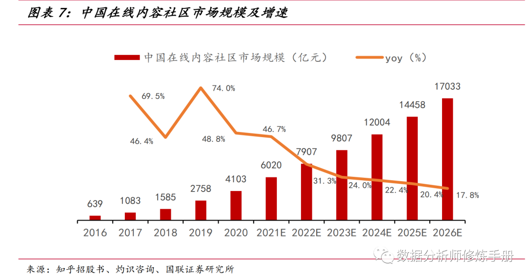 相比于其他内容平台,知乎的月活和收入都还不算高,因此还有一定的增长空间。另一方面,据测算,在线内容社区整体也有一定的增长空间。