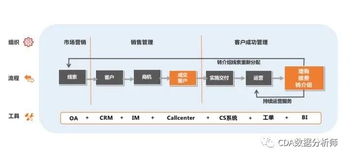 搭建数据指标体系——确定核心业务指标,比如活跃率、续约率、增购率等。