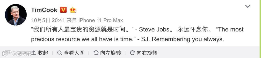昨天,2019年10月5日,是苹果创始人乔布斯逝世8周年的日子,苹果现任CEO库克也在微博表达了缅怀之情,但网友的评论就略显尴尬。
