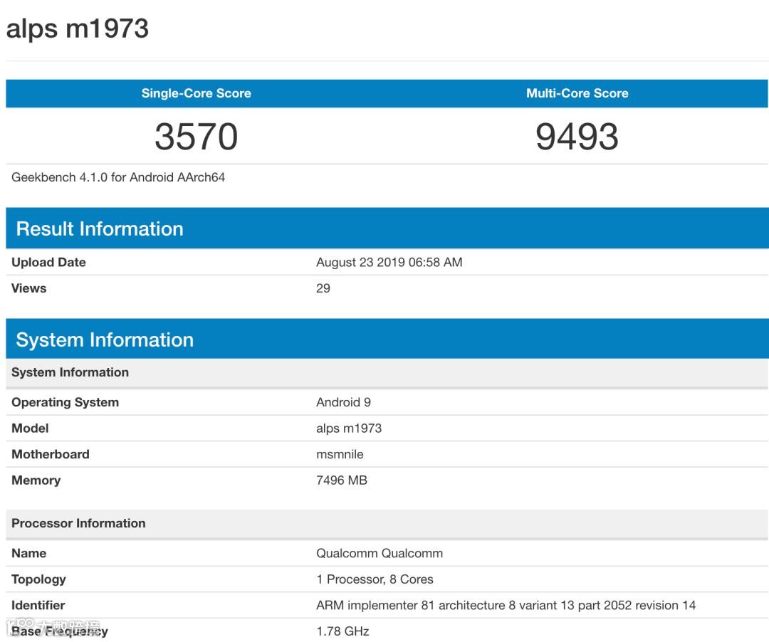 GeekBench显示,魅族16s Pro型号为M1973,单核3570分,多核9493分,配备8GB运存,内置Android 9,搭载的是骁龙855Plus处理器,表现是主流旗舰水平。