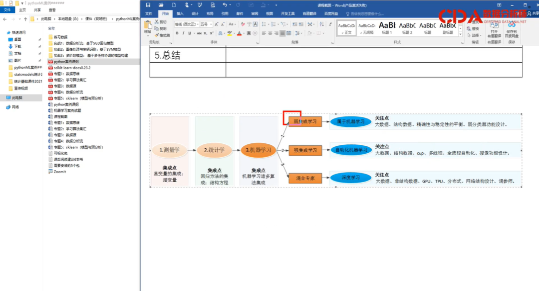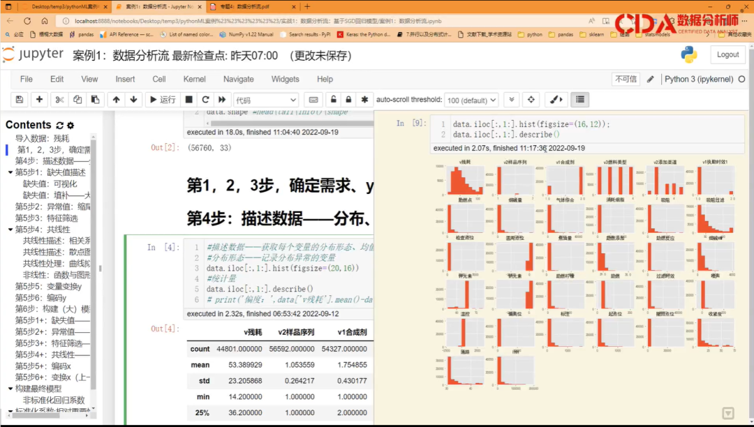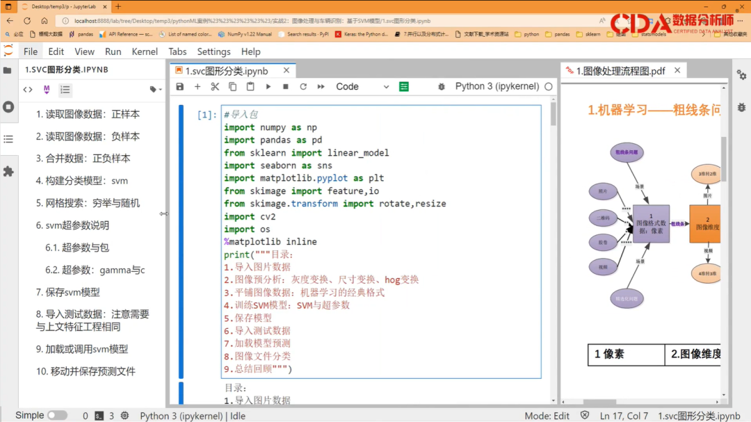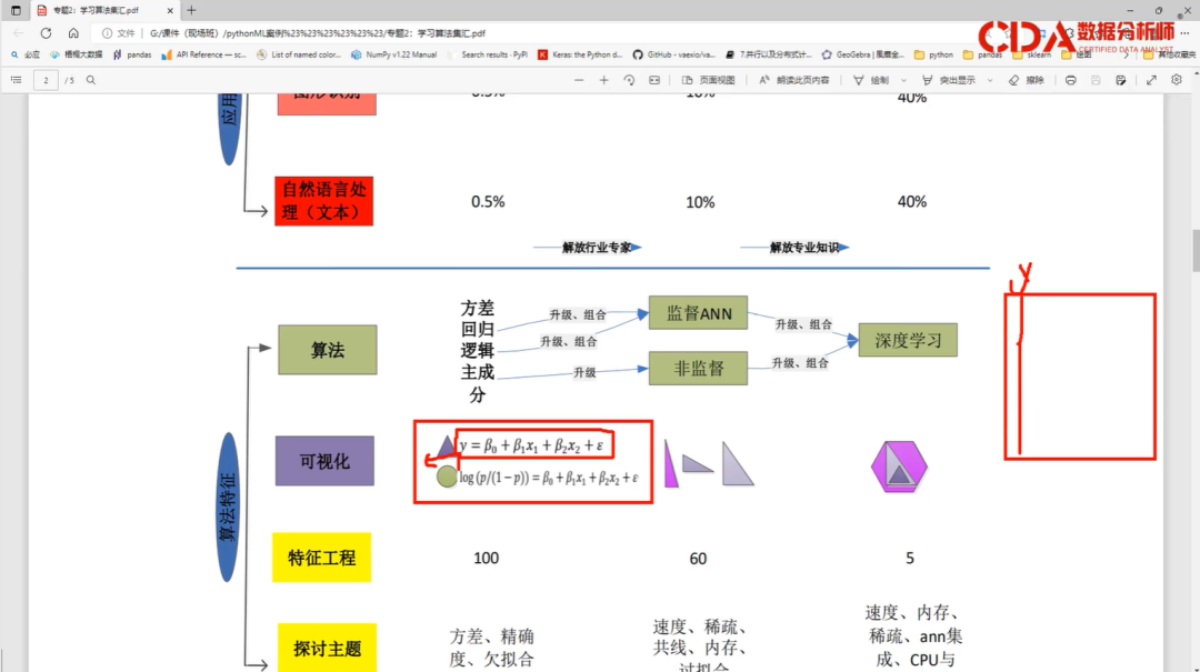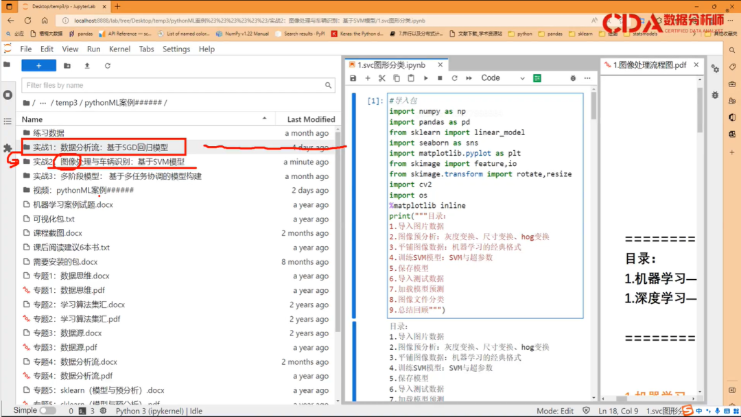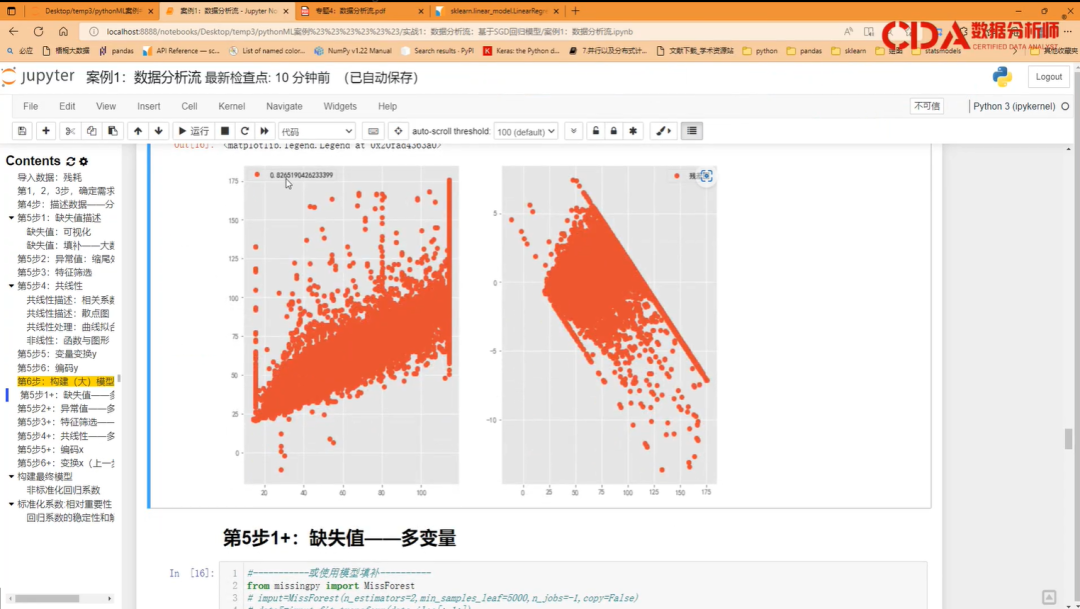课时1:课程特点课时2:目录介绍(模型与应用、实战案例与统计功能)课时3:前言(小数据与大数据、学习与人工智能、应用场景)课时4:前言:学习算法集汇(统计学习、机器学习、深度学习)课时5:软件jupyter安装:anaconda安装、第三方库课时6:数据分析流:业务逻辑、描述性挖掘(业务逻辑、数据描述)课时7:数据分析流:预分析(缺失、异常、共线等)课时8:构建模型:残差与修正课时9:模型应用:模型评估、应用、可视化课时10:案例1:数据分析流——导入第三方库课时11:案例1:数据分析流——数据描述课时12:案例1:数据分析流——缺失值可视化课时13:案例1:数据分析流——导入数据课时14:案例1:数据分析流——相关法特征筛选课时15:案例1:数据分析流——缩尾异常值课时16:案例1:数据分析流——缺失值填补课时17:案例1:数据分析流——y编码和变换课时18:案例1:数据分析流——共线性课时19:案例1:数据分析流——构建大模型课时20:案例1:数据分析流——异常值处理(多变量)课时21:案例1:数据分析流——编码离散化(多变量)课时22:案例1:数据分析流——特征筛选(多变量)课时23:案例1:数据分析流——共线性(多变量)课时24:案例1:数据分析流——构建模型(线性与非线性)课时25:案例1:数据分析流——应用,可视化课时26:案例2:图像处理与车辆识别——ML粗线条识别课时27:案例2:图像处理与车辆识别——原始数据和分析流程解读课时28:案例2:图像处理与车辆识别——图片规范化处理课时29:案例2:图像处理与车辆识别——SVM模型选择与超参数调整课时30:案例3:数据不平衡的危害课时31:案例3:数据分析之前需要考虑的问题——数据和项目拆解课时32:案例2:图像处理与车辆识别——加载模型与移动图片课时33:案例3:不平衡问题:第三方库imblearn课时34:案例3:数据分区——训练、测试、滚动课时35:案例3:分类模型的特征选择——业务与统计,单与多变量课时36:案例3:分类模型与回归模型——结合策略课时37:案例3:问题困境总结——多阶段模型集成课时38:案例3:模型评估——准确性和稳定性课时39:案例3:特征工程——缺失值,特征筛选课时40:案例3:数据管理和数据清理课时41:案例3:模型整合课时42:专题1:python IDE——spyder课时43:专题2:python IDE——jupyter notebook课时44:专题3:python IDE——jupyterlab课时45:专题4:第三方库imblearn——随机森林平衡器