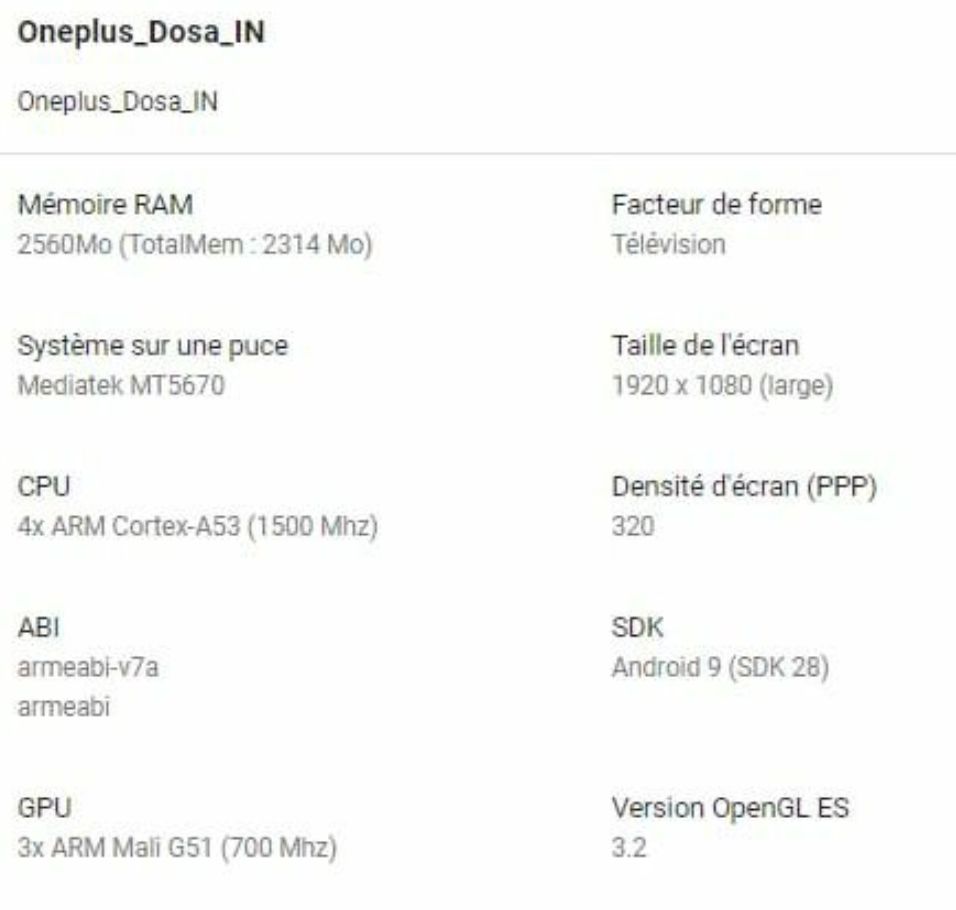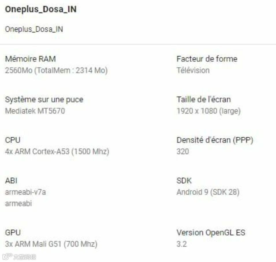 另有配置表曝光,一加电视内部代号“Dosa”,搭载由四枚Cortex-A53核心组成的联发科MTK5670处理器,2.5GB RAM,预装Android 9系统,FHD分辨率屏;没记错的话之前官宣预热的是一加TV将配备三星55英寸的4K QLED屏,这个分辨率对不上,要么对应的是低配版要么估计就是爆料有误。
