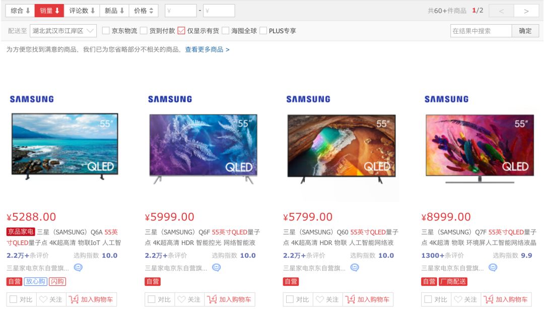 最后是发布时间和价格,官方预热OnePlus TV将于9月在印度推出,其他市场随后推出(爆料称国内发布是10月26日);此外,刘作虎曾表示价格比索尼三星便宜,目前京东销量前10的4K QLED 55英寸电视中最便宜的是5288元,或许一加会来个4999?