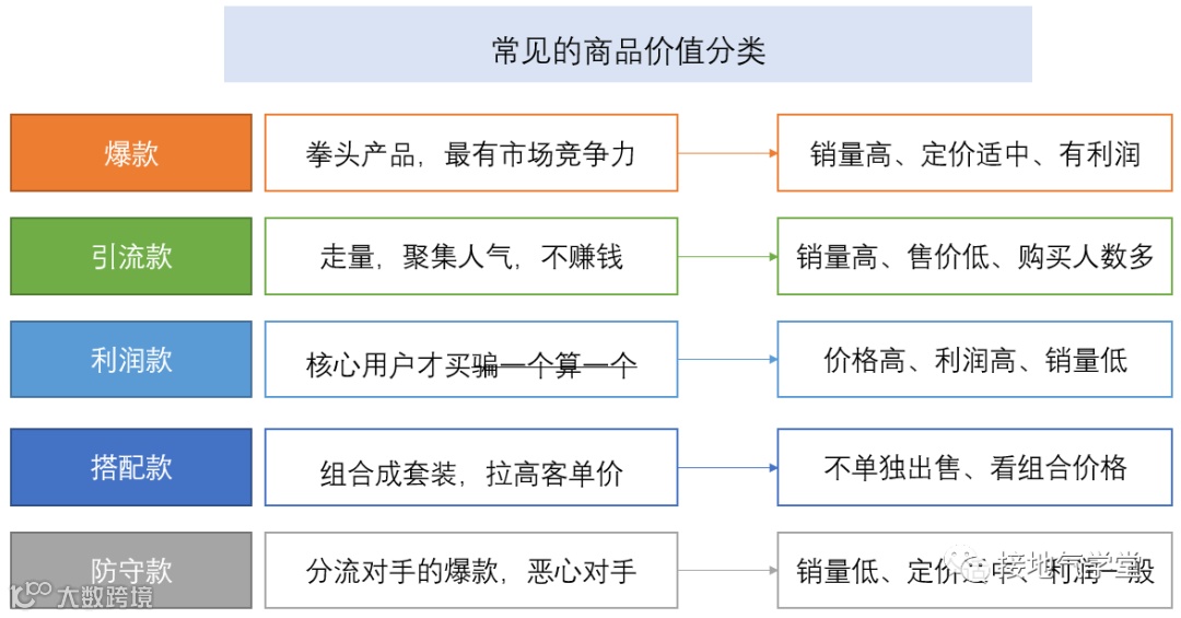 1、商品价值标签:爆款、引流款、利润款、搭配款、防御款