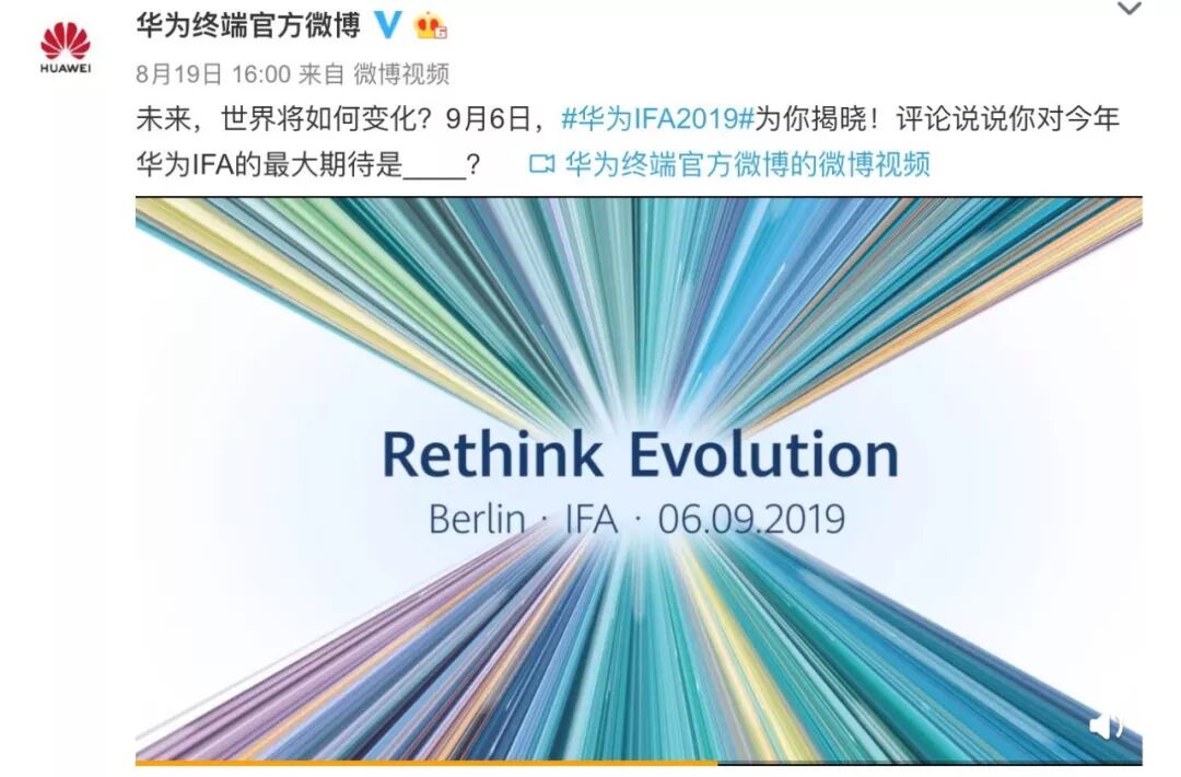 据华为官方预告,其将于9月6日柏林IFA 2019大展 发布全新的麒麟芯片,到底是麒麟985还是麒麟990,或者两者皆有,坐等下下周官方揭晓。