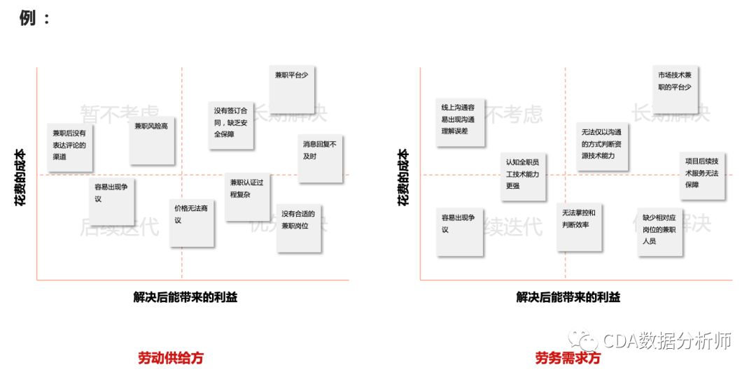 接下来,需要对每个问题进行评估,确定问题的重要性和紧迫性。例如,对于兼职信息不准确这个问题,可以认为这是一个非常重要且非常紧迫的问题,因为如果信息不准确,会导致兼职者找不到合适的兼职机会,从而影响平台的使用体验。
