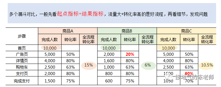 这一步注意,区分全局影响因素和局部影响因素,是分析的前提。比如上例中的转化漏斗,品牌、商品、价格,这仨就是全局性影响。