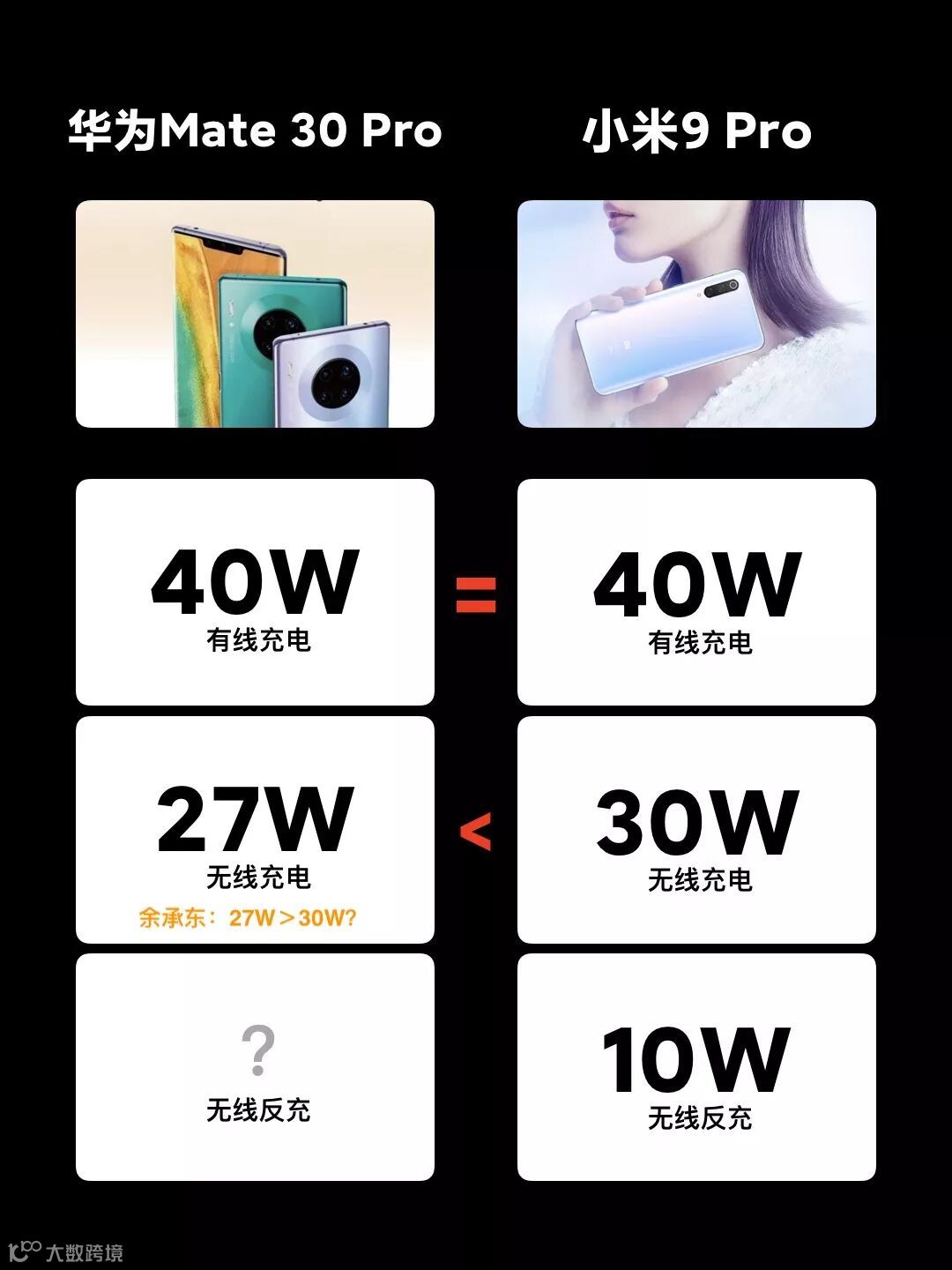 回顾昨晚,余承东表示Mate 30/Pro标配40W有线快充,支持27W无线超级快充(27W无线充需另购),并称反向无线充电速度是之前的3倍,当时余承东还强调,虽然友商推出了30W无线快充方案,但指的是充电头输出端的功率,而华为的27W无线快充是手机可以获得的功率,所以实际上充电速度更快。🤔