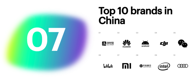 如上图所示,中国消费者心中最认可的TOP 10品牌依次为支付宝、华为、Android、大疆、微信、bilibili、小米、中信银行、英特尔、奥迪。前10只有两家美国品牌,而2017的调查结果中美企有5个。第一是几乎人人都在用的支付宝稍微有点小意外~