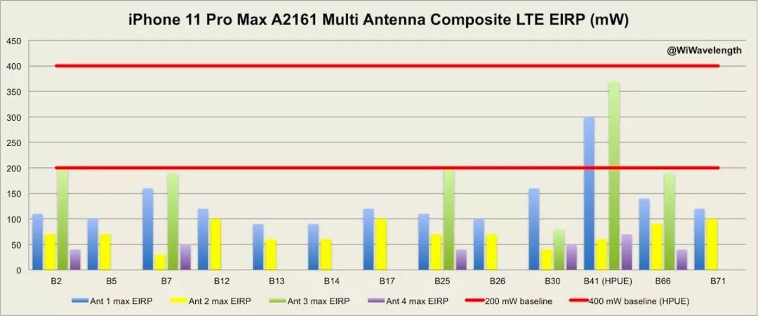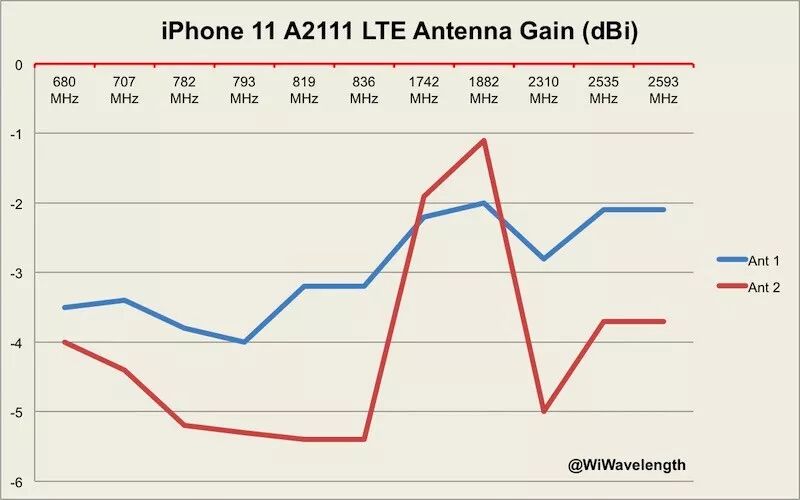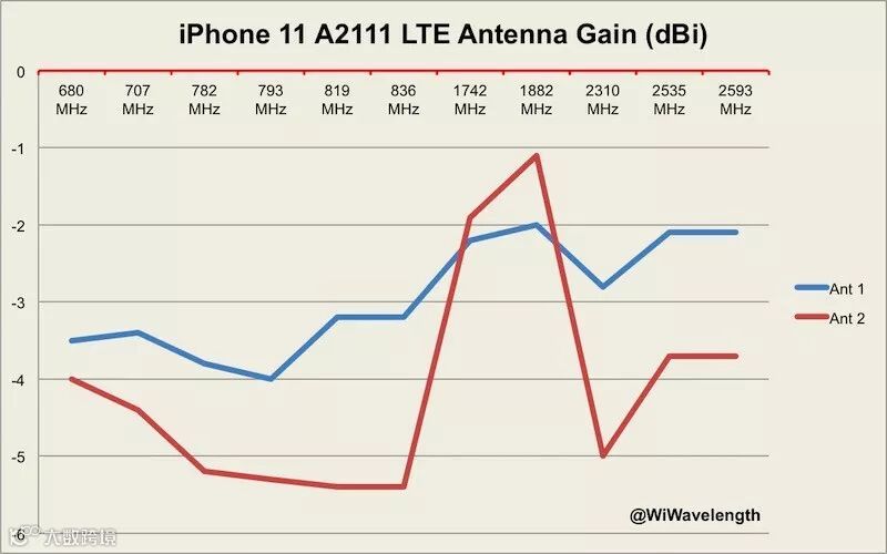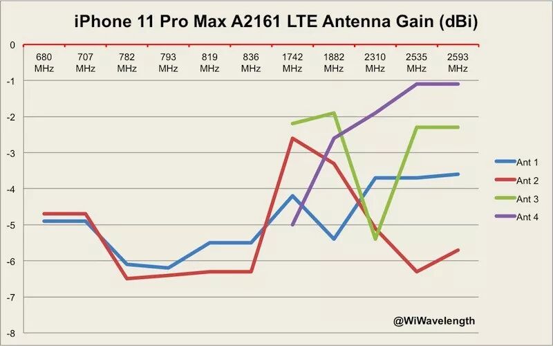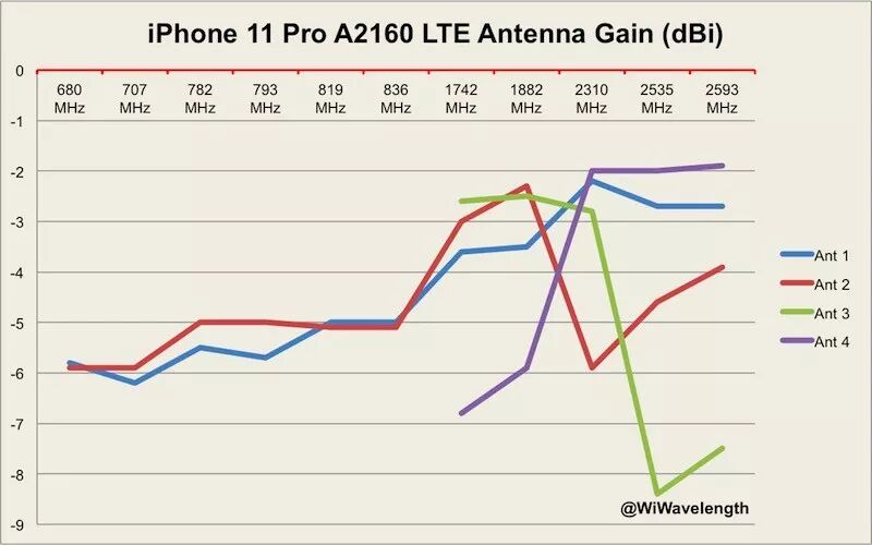 国外射频通信研究室日前发布了iPhone 11系列的一组信号测试数据。