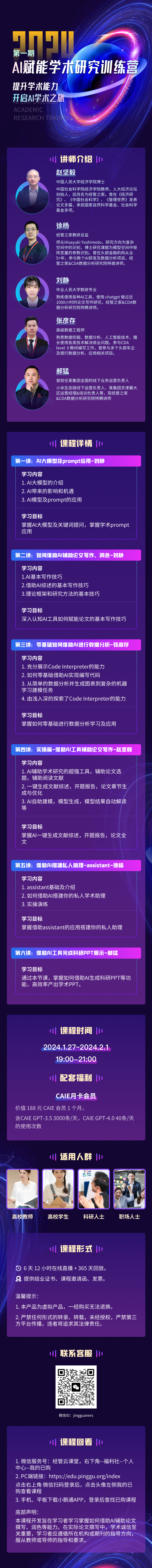 旨在帮助你掌握借助AI工具从提示词prompt,文献综述,论文大纲,数据分析,AI模型、PPT汇报全流程,使用AI来辅助学术写作和文献综述、零基础写代码及教学PPT制作等。