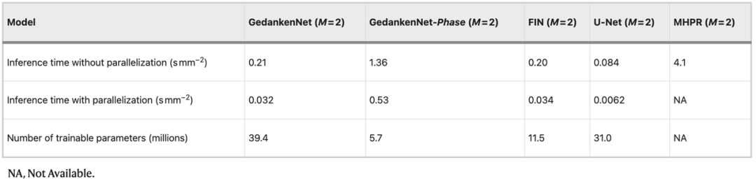 如表 1 所示 ,与 MHPR(M = 2)相比,GedankenNet 将图像重建过程加速了约 128 倍。