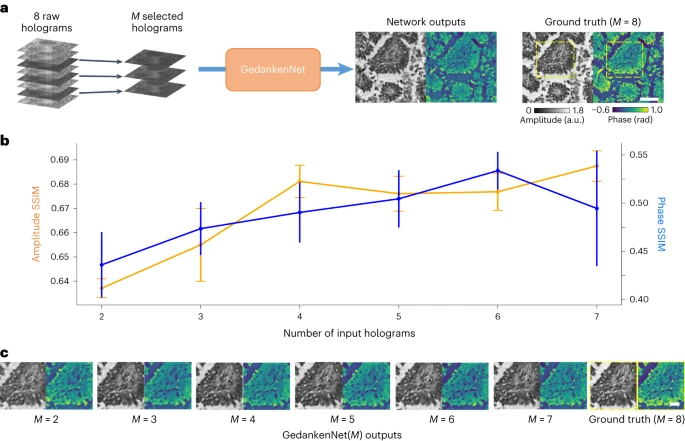 作为自我监督的人工智能模型,GedankenNet 消除了对大规模、预先标注的训练数据需要,展示了优越的外部泛化能力和高质量全息图的重建结果。