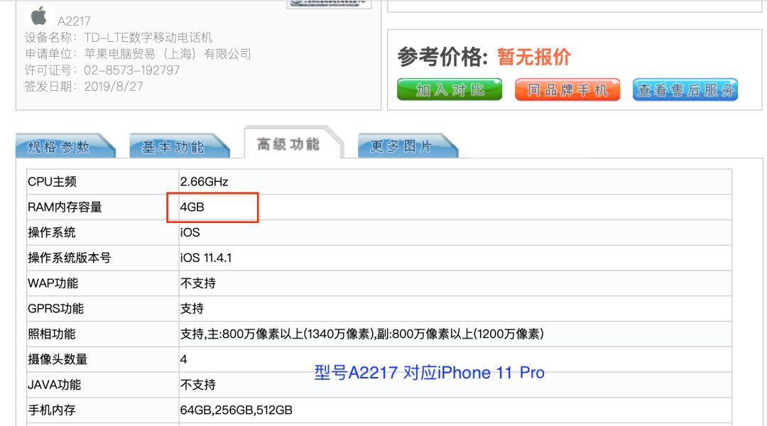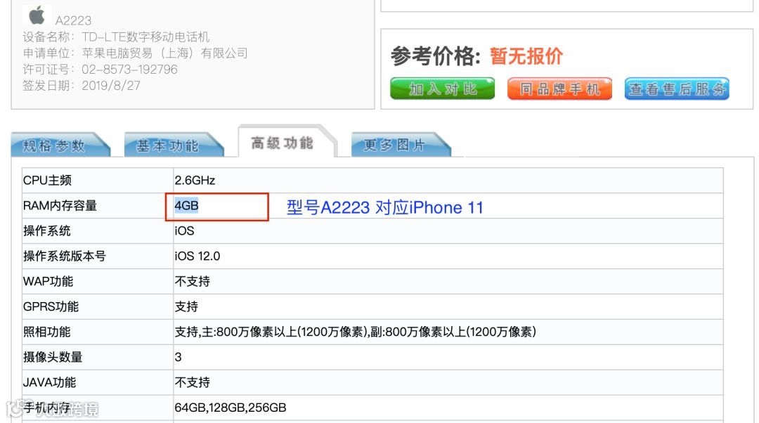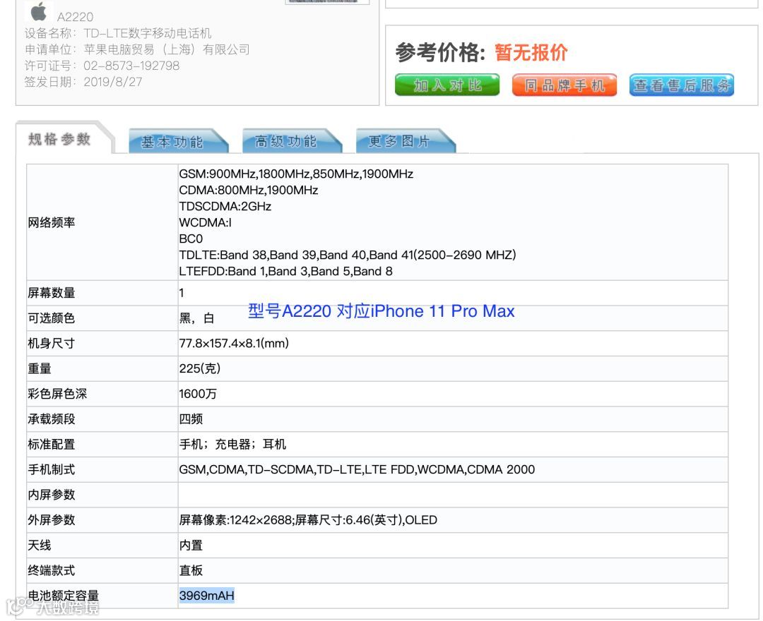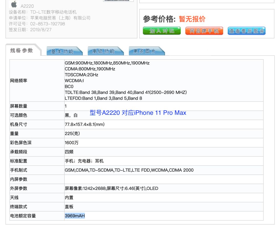 之前iPhone 11系列的内存和电池容量被曝出多个版本,现在可以尘埃落定了,今天国家工信部正式披露了iPhone 11 、iPhone 11 Pro、iPhone 11 Pro Max三款新机的详细规格。最让人意外的是,最大电池容量竟然有4000mAh。