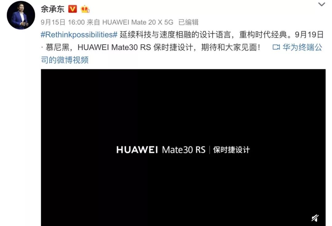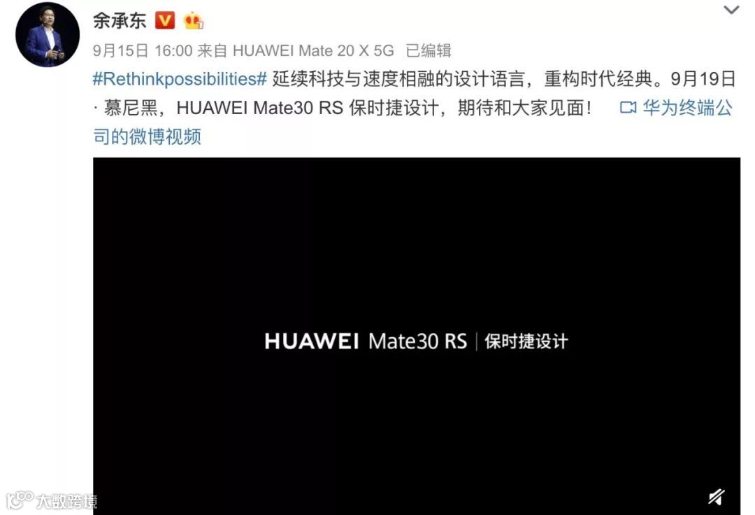 据之前消息,华为目前已经宣布将于9月19日发布的新品有华为Mate 30/Pro外,华为WatchGT2智能手表以及华为Mate 30 RS保时捷设计版。
