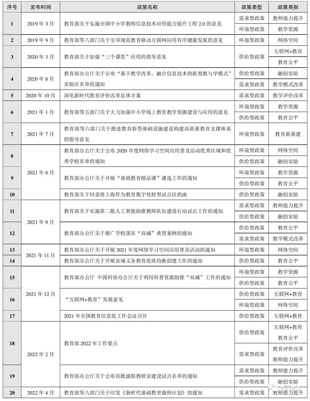 近年来,中共中央国务院、教育部等制定并颁布了系列教育数字化转型的相关意见和通知。这些政策性的文件对教育数字化转型的时代背景、转型目标、原则任务、转型流程、具体功能等进行了总领性陈述,引导我国高等教育、基础教育、职业教育等领域数字化发展和智能升级朝着良性、有序方向发展。