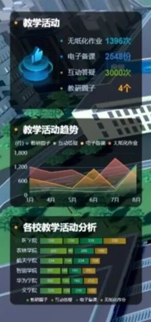 运用数字孪生、物联网、可视化等技术,建设全向交互、全面感知、高效协同的智慧校园,包括校园云基础平台、大数据平台、智慧教学平台等。一体化平台建设着力构建泛在连接的网络生态、互联互通的平台生态、优质共享的资源生态、智慧绿色的校园生态,实现教学资源共享、过程管控、决策分析和精准管理。