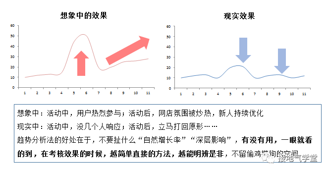 所以,为啥有个名字叫“趋势分析法”,而不是“我画个折线图,高了就是好,低了就是不好”。是因为即使画个折线图,想要不作出错误判断,也得按规矩一步步来。这就是方法和随便玩玩的区别。而下边我们会看到,随便玩玩,经常玩出问题来。