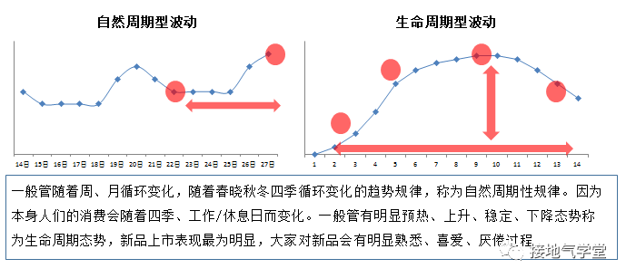 因为根本没考虑,到底是什么行业、什么产品的销售业绩。不同行业、产品的销售,在一定时间内会呈现不同的销售走势。比如吃喝玩乐类销售,往往集中在周末,会呈现以周为单位的周期性波动。比如3C类电子产品,新品上市是最火热的时候,之后会呈现逐步衰退的迹象。当销售趋势增加了时间维度后,才会呈现出规律性。