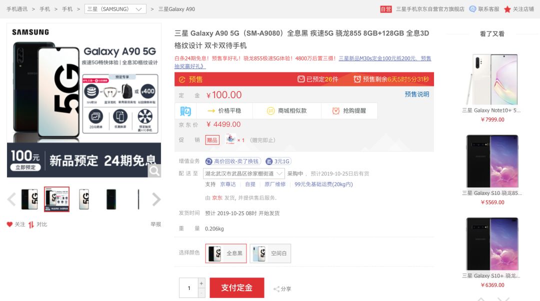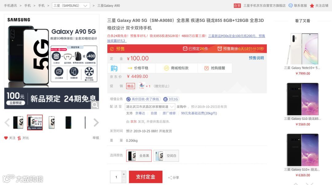 作为对比,三星在中国公开销售的Galaxy Note 10+5G版售价是7999元(12+256GB),A90 5G版在某些角度应该还是有吸引的,可惜截止到今天下午18:30左右京东支付定金的仅有26件,略惨淡,但也比中国移动X1先行者首发时好上一些