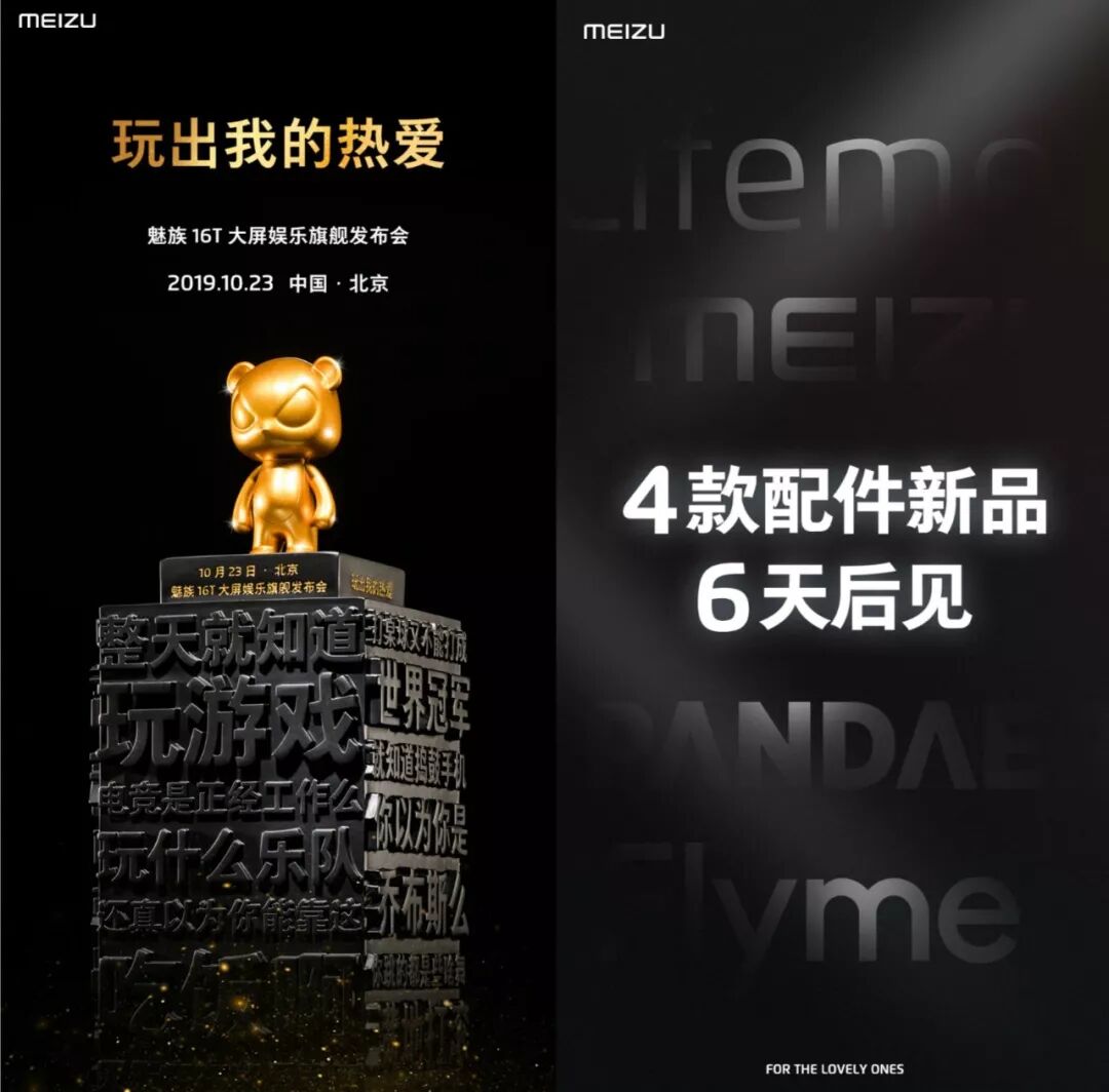 昨日,魅族科技正式宣布新机「为年轻人打造的全新大屏娱乐旗舰」——魅族16T 将于10月23日在北京发布,现在除了新机外,更多新品开始披露,表示将同时有4款配件新品发布。