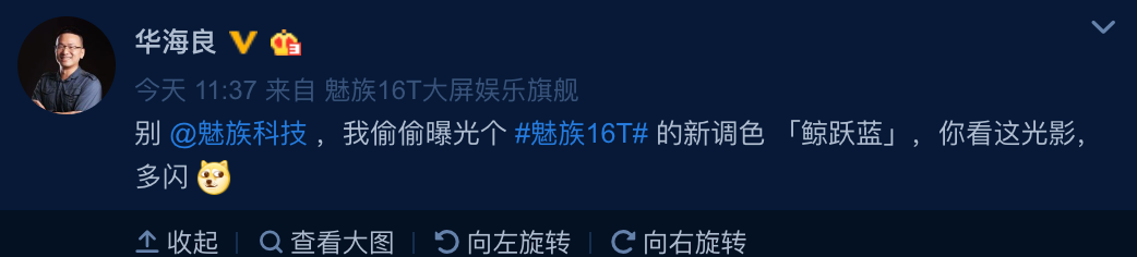 至于魅族16T这台新机,副总裁今日还晒出了16T的新色「鲸跃蓝」实拍照,可以看到其采用后置三摄,最中间那颗摄像头周边还有红色的环状。于是有网友提到了米9的天使眼...