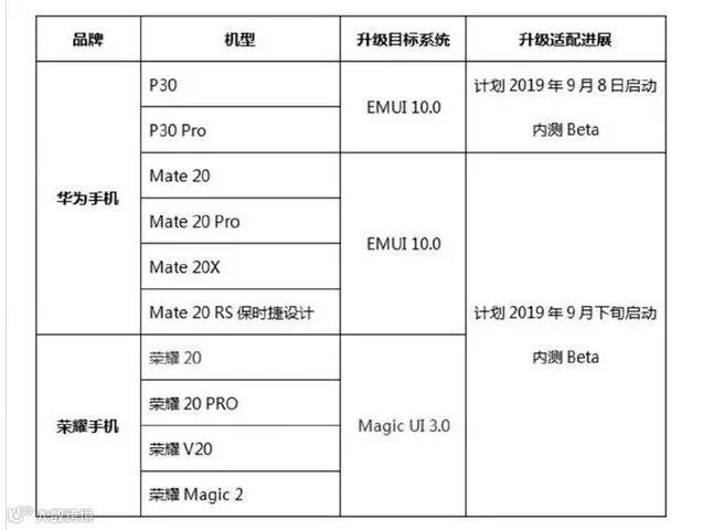华为、荣耀手机EMUI10/Android Q适配进度公告:10款机型优先升级。分别是华为P30、P30 Pro、Mate 20、Mate 20 Pro、Mate20 X、Mate20 RS保时捷设计、荣耀20、荣耀20 PRO、荣耀V20、荣耀Magic2等手机。其中华为P30系列将于9月8日率先启动EMUI10的Beta升级尝鲜。
