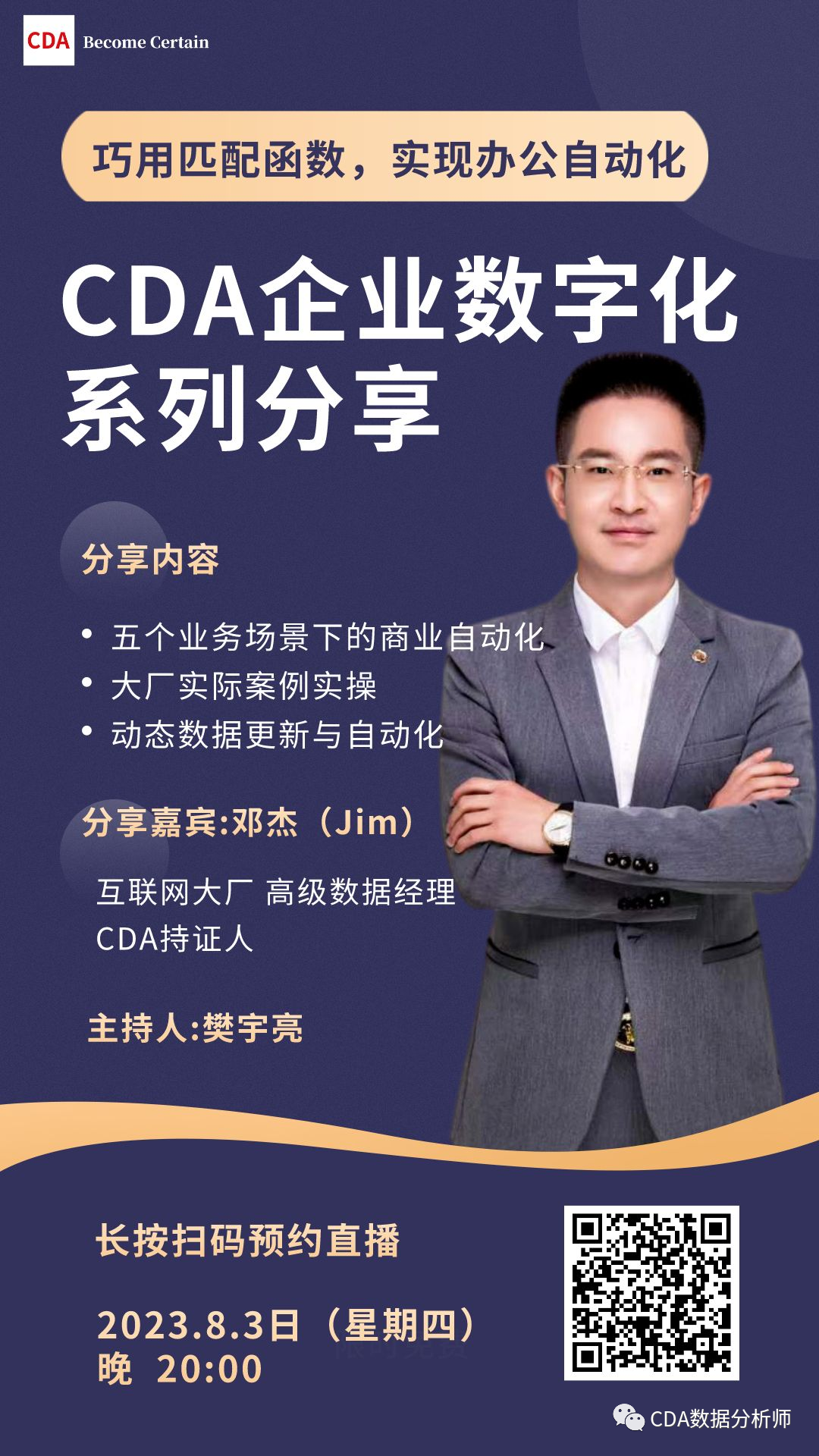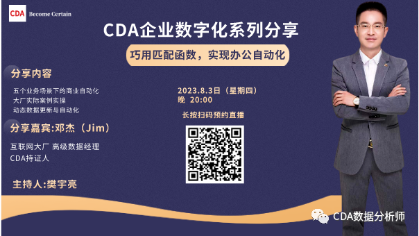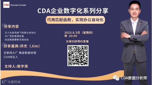 欢迎关注、转发、参加8月3日晚20:00 CDA持证人 邓杰