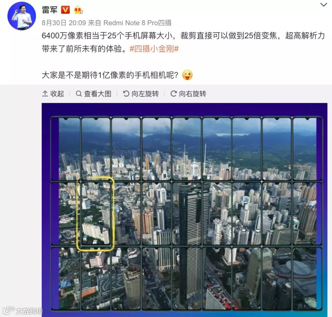 日前Redmi Note 8 Pro首发三星GW1 6400万像素相机,友商雷军也在微博进行宣传,表示6400万像素裁剪后相当于可以实现25倍变焦,同时也发出“1亿像素的手机相机”预热,如果没有意外的话,这台新机应该就是爆料的小米MIX 4。