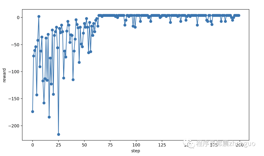 最后分析训练时步与路线奖励值关系图,看到逐渐收敛。