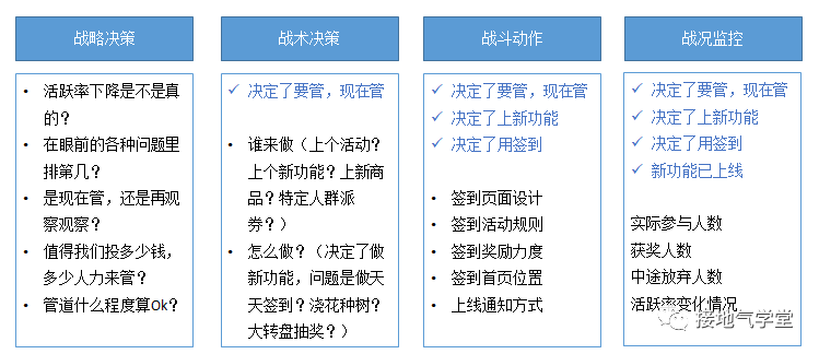 错误在哪里?错误在把业务想简单了。即使看似简单的:“活跃率低了”真要付诸行动,也得考虑上边列出来的众多环节。并且这些环节里,有一些不是数据能直接解决的(比如签到活动的创意设计,浇花、种树、养金猪、造电器……这些靠加减乘除可算不出来)。