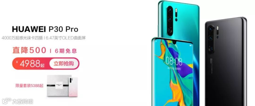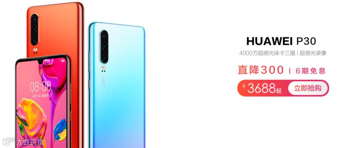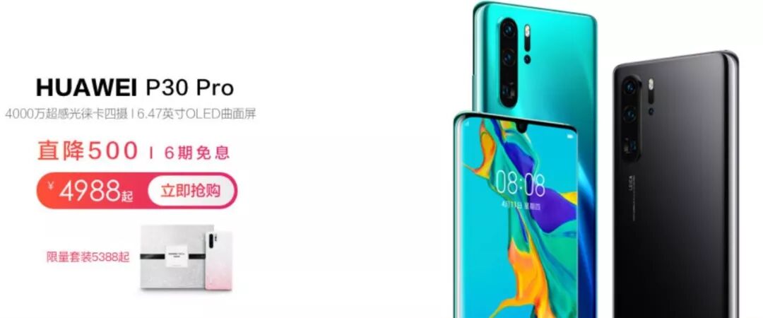 具体来说,华为P30 降价300元,6+128GB/8+64GB降为3688元,8+128GB降为3988元,8+256GB降为4488元;